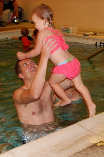 First up was Lucy's second year of swim lessons at the Y. We went 2 nights per week for the month of July for a total of 8 lessons. She was in the same class as last summer (6 months-2 years) but wow, what a difference a year makes in this class! I remember last year, the instructor would tell the kids to blow bubbles or jump in and Lucy didn't have a clue what was going on. It was more to get her used to the water. This year, she loved jumping in and cried a few times when swim lessons were over because we had to get out of the water. She is our little water baby and was very comfortable in the water.